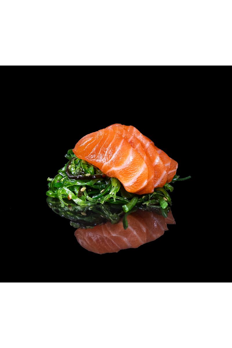 Laks. Inneholder: Fisk, sesamfrø, hvete, soya, sennep, sulfitt