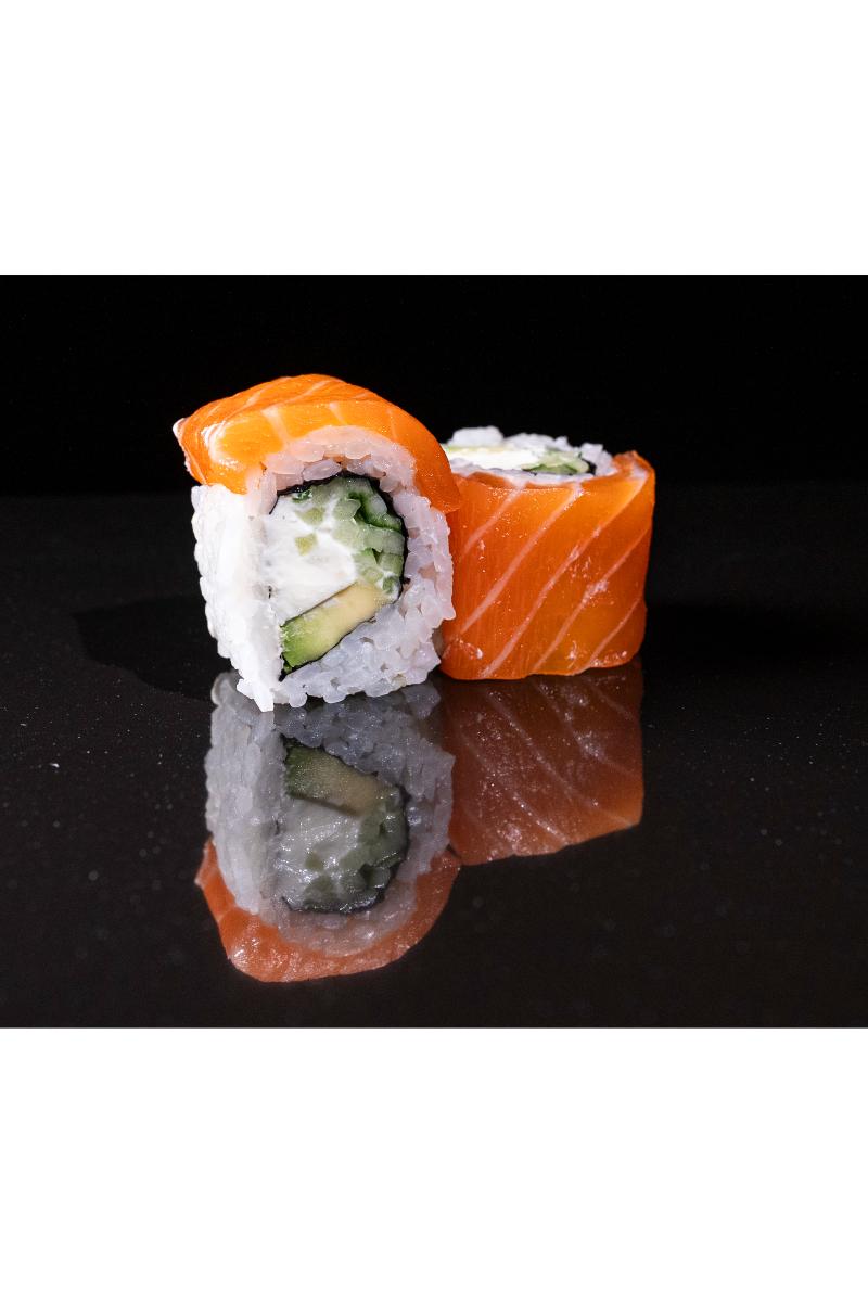 Laks, philadelphia ost, avokado, agurk. Inneholder: Fisk, hvete, melk, soya, sennep