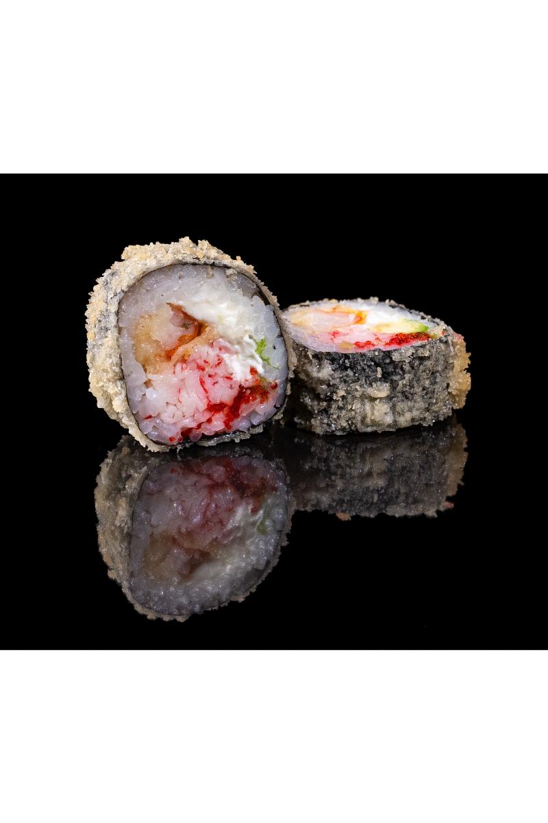 Scampi, surimi, philadelphia ost, avokado. Inneholder: Hvete, fisk, skalldyr, soya, sennep, melk.