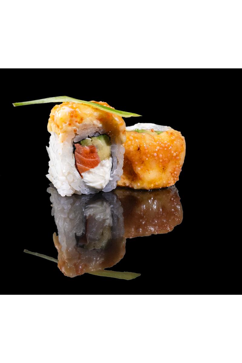 Laks, philadelphia ost, avokado, ost, majones. Inneholder: Hvete, melk, fisk, soya, sennep, egg