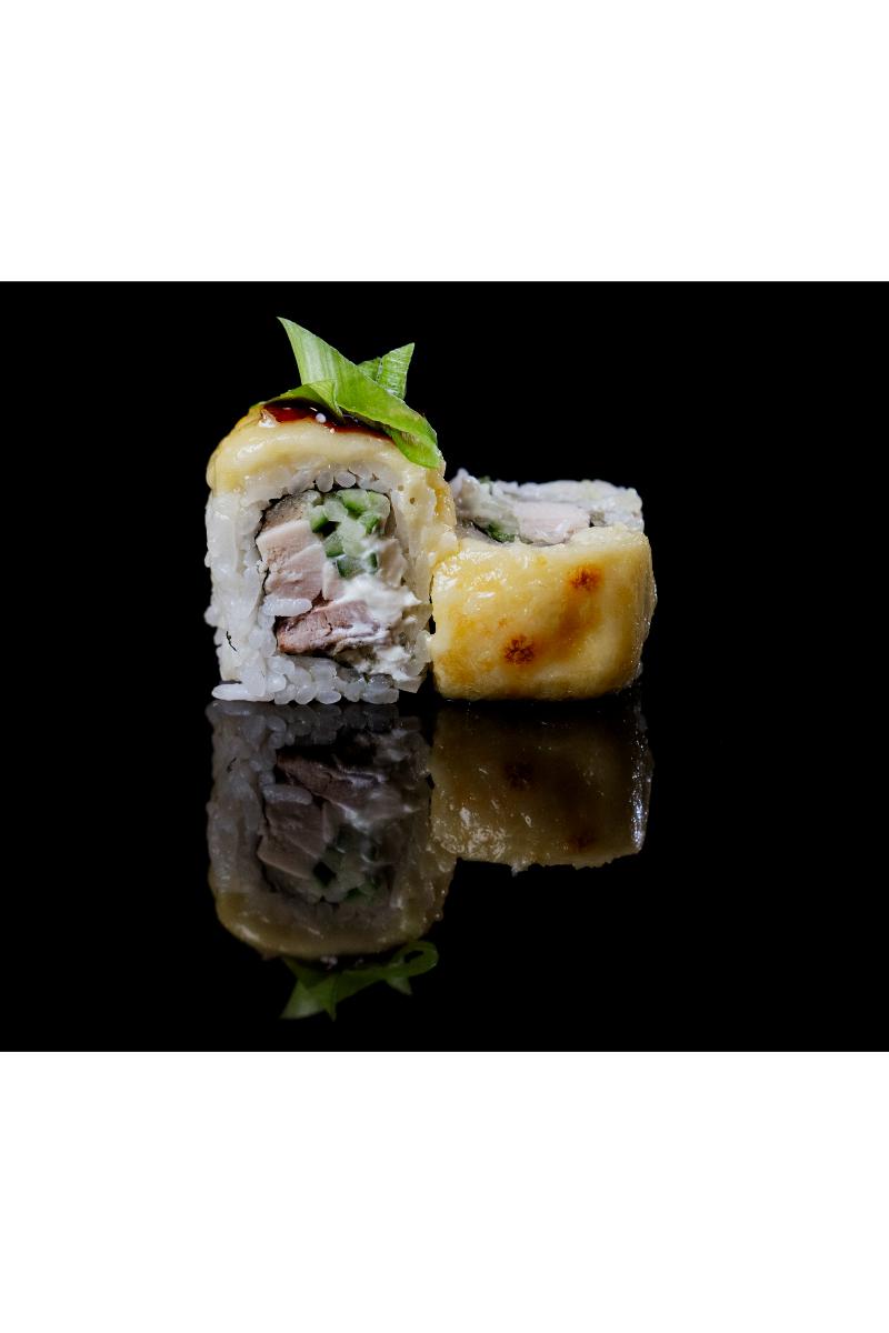 Tempura kylling, agurk, philadelphia ost, majones, vårløk, teriyaki saus. Inneholder:Melk, hvete, egg, soya.