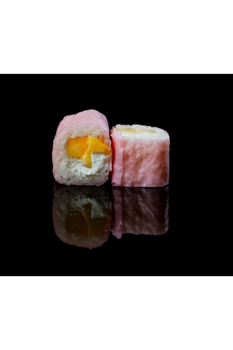 Mango, mascarpone, vaniljesaus. Inneholder: Melk, soya